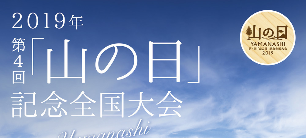 第4回「山の日」記念全国大会 Yamanashi の大会ロゴマーク&ポスター他をデザイン。関連しA4チラシ(2タイプ)、会場プログラム、のぼり旗、横断幕、イベント会場用自立バナー、webバナー、メッセージボード&ステッカー等をデザインしました。